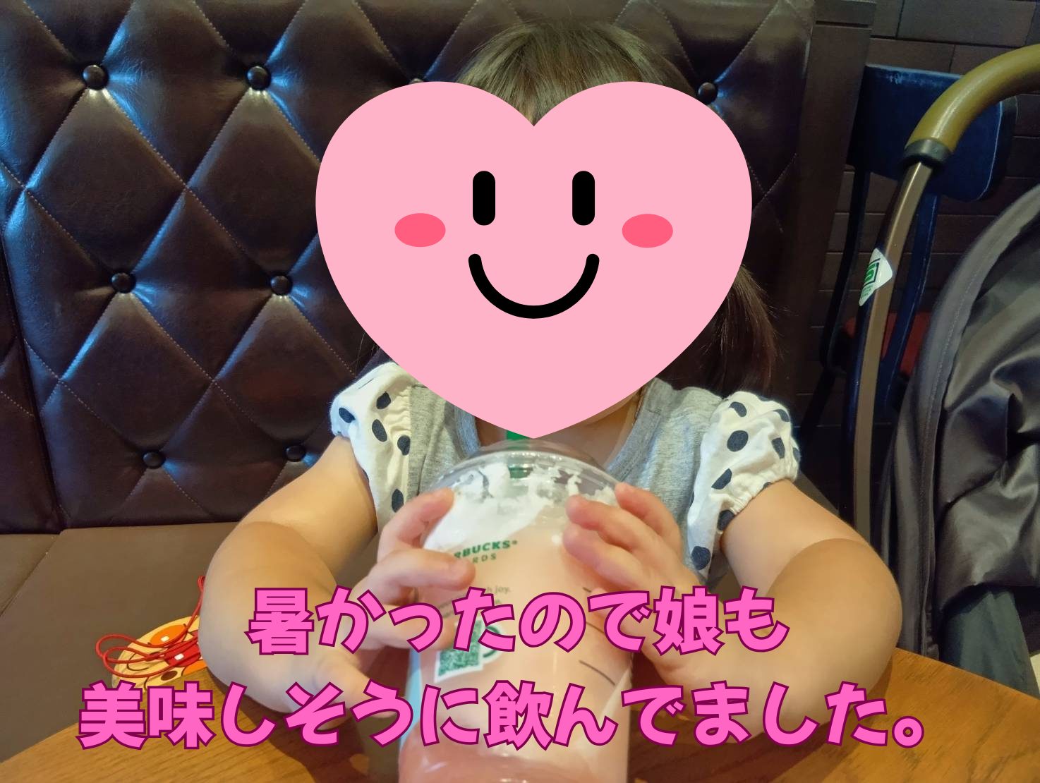 スタバでは生徒のおすすめの『ダークモカチップフラペチーノ』と、妻と子供で『ピーチフラペチーノ』を頼みました。店員さんにクーポンもらえる裏技も教えてもらって、大分お安く頼むことができました。