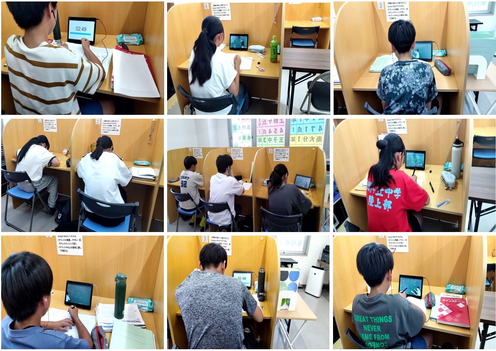 個別指導【じりつ型個別指導Assist】の生徒はそれぞれ自分の目標に向かって夏期講習は毎日のように塾に来て授業と自習を頑張っていました。中学受験の生徒は2学期で志望校の基準を超えられるように引き続き頑張っていきましょう。中学生は1・2年生は定期テスト、3年生は定期テストと全県模試の両立を意識、高校生は定期考査、共通テストを意識して頑張っていきましょう。