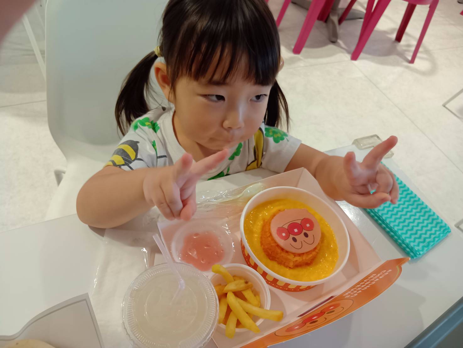 ご飯を食べるところはお昼は混むのでついてすぐに娘のアンパンマンオムライスなど食べて、イベントなどに出来るだけ参加しました。娘はバイキンマン推しなのでバイキンマンとダダンダン(バイキンマンのメカ)のショーで一番テンションが上がっていました。