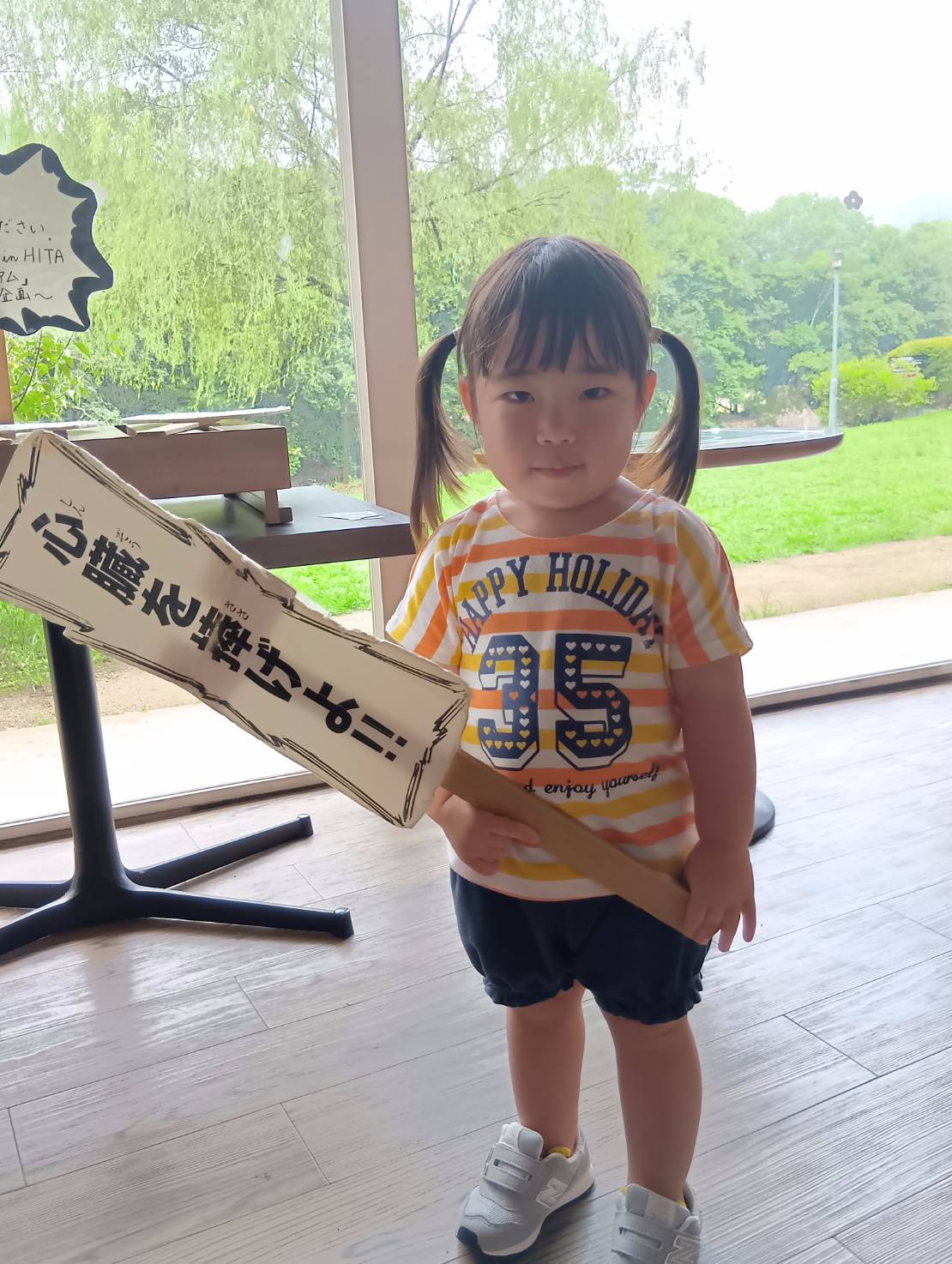 日田と言えば、進撃の巨人の諫山創先生の出身地としても有名です。進撃の巨人ミュージアムに最後に行きました。娘は巨人を怖がっていました。息子は何もわかっていませんでした…。諌山先生の机にも娘が座らせてもらって、とても楽しめる場所でした。