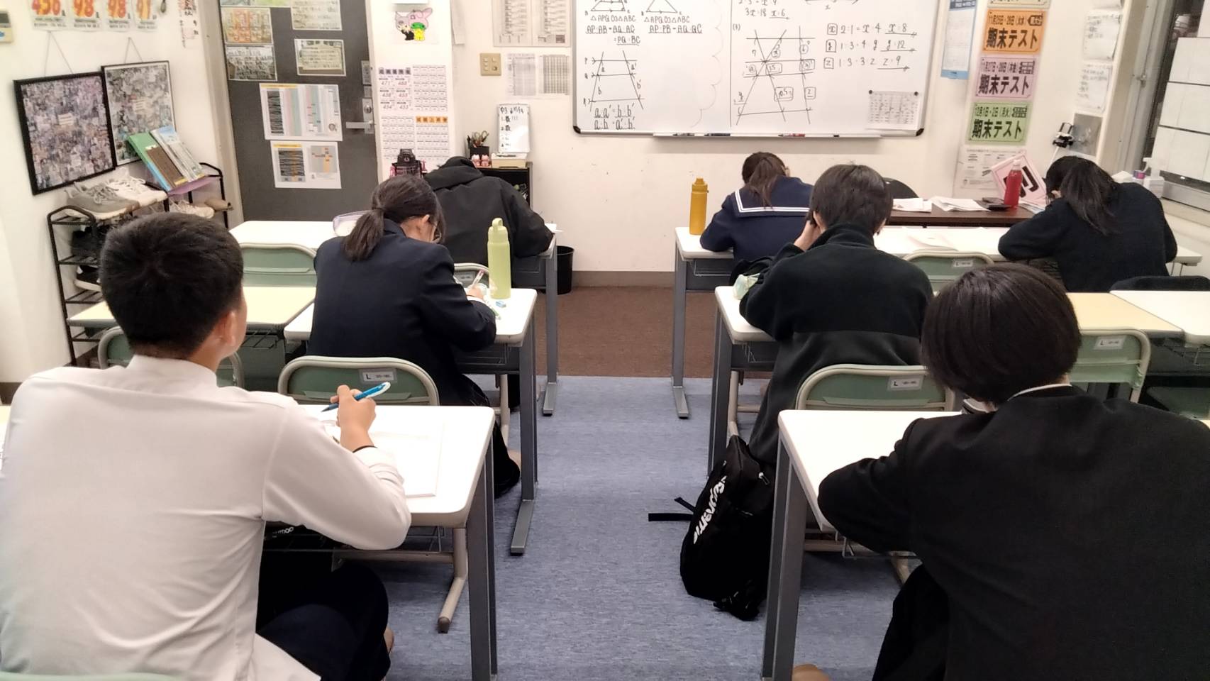 中3の数学 証明の対策を行いました✍ 2025年11月14日 最終更新日時 : 2025年11月14日 藤花塾 中学3年生の期末テストは証明がとても難しい内容になります。期末テストに向けて直前対策で証明の授業を行いました! 中3はこのテストで入試での内申点がほぼ確定します。志望校に近づくために、期末テストで高得点獲得を目指そう!!