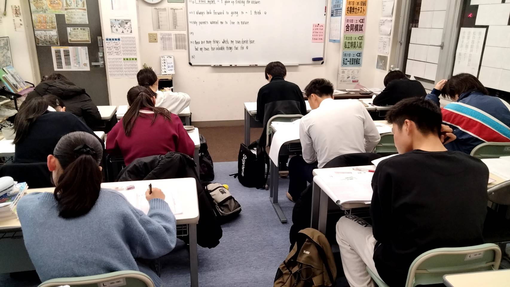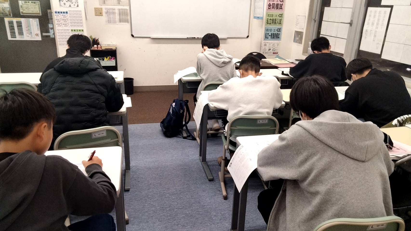 中学1・2年生は学年末テストに向けて早めにこの冬から頑張っています。学年末テストで決まる内申点は入試で合否に影響します。つまり学年末テストは入試の一部です。志望校に近づくために頑張りましょう。