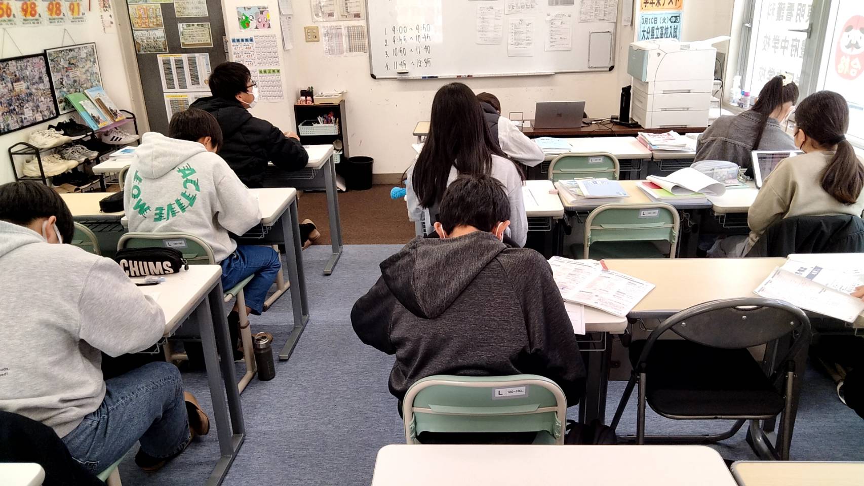 年に数回しかない午前中の勉強会で「眠い~」と言っていましたが、チャイムが鳴ればテンションを変えて真剣に問題に取り組んでいました。すばらしい!